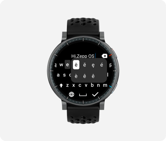 5. Smart recognition of strength training exercises can only be engaged within the Strength Training sports mode. 25 exercises are able to be recognized at time of product release, including: Bodyweight squats, Bodyweight straight arm front squats, Barbell squats, Tricep pushdowns, Bent over rows, Barbell bench press, Sit-up holds, Knee-touch sit-ups, Dumbbell flys, Burpees, Burpee jumps, Overhead tricep extensions, Lying tricep extensions, Lateral raises, Jumping jacks, Lat pulldowns, Deadlift, Push-up, Shoulder press, Pull up, Bicep curls, Seated cable rows, Dumbbell drag curls, Straight-arm pulldowns, Russian twists. If an exercise is not auto-recognized by watch, the Zepp App can provide a list of muscle groups or exercise names to choose from.